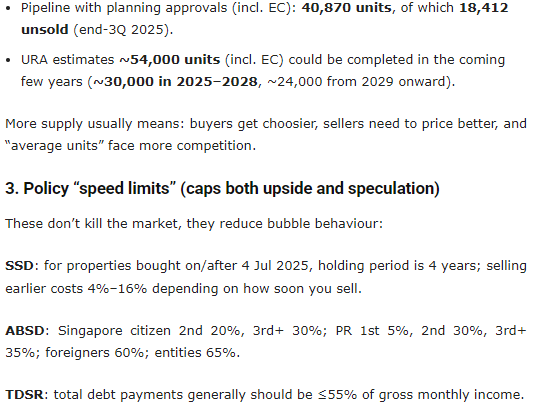 – Originally introduced in 2024 and slated to end in 2026, the extended cap aims to support rental demand amid a gradually rising supply of new homes. Authorities have noted that continued monitoring will determine whether further extensions are needed beyond 2028. (Source: Straits Times – Rental Cap Extension)